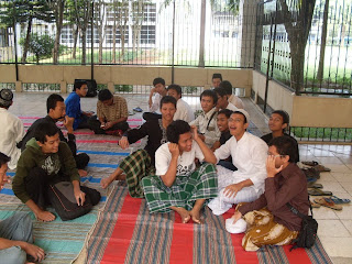 Yesterday all members of Himpunan Mahasiswa Surabaya held "Doa Bersama". At the moment, there was a brief presentation about Himasurya Tour which will be held on April 25, a sharing-time with the seniors of Sekolah Tinggi Akuntansi Negara who have graduated from this academy, and of course the praying-time itself. Here we invited Ustadz Muchsinin. Thanx for coming, sir :)